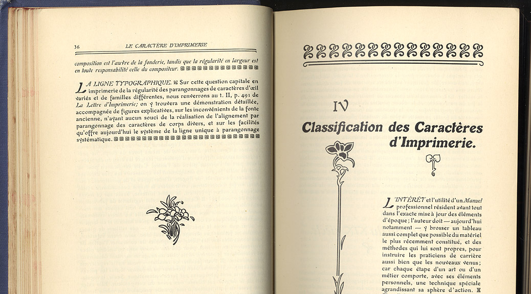 L’Art nouveau étend son influence sur l’édition. Francis Thibaudeau, chef de l’atelier de composition de la fonderie Deberny & Peignot, connu pour avoir inventé un système de classification des caractères typographiques, défend dans son manuel la composition asymétrique et l’usage de caractères « modernes ». Ce style très français est aujourd’hui largement connoté, et n’évoque plus guère la modernité.