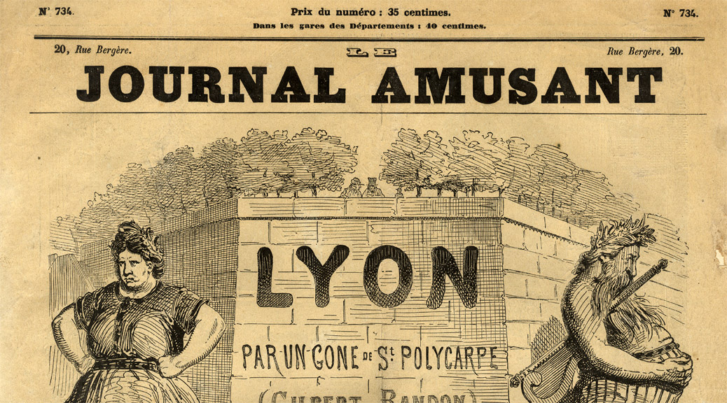 La caricature aime s’en prendre aux puissants. Si elle n’a plus les pouvoirs d’antan, l’Église catholique est, au XIXe siècle, une cible de choix. Dans un numéro spécial consacré à la ville de Lyon, le caricaturiste lyonnais Gilbert Randon (1814–1884) présente une vue de la colline de Fourvière devant laquelle un lion endormi est envahi de cafards, vers, rats, et surtout de corbeaux, symboles de l’Église et de ses séides pour les anticléricaux d’alors.
