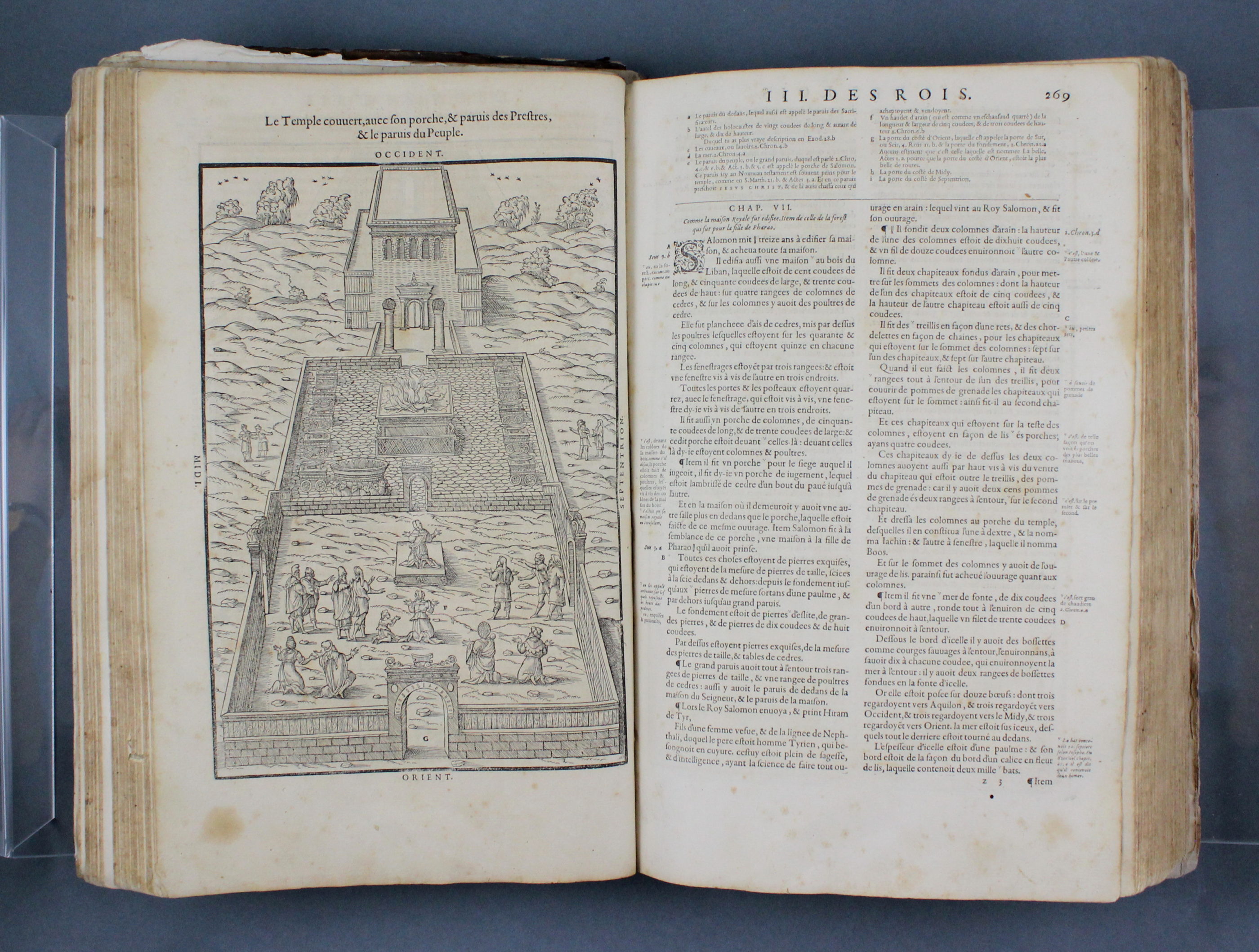 Cette Bible donne la version de Pierre Robert Olivétan (1506–1538), revue par Calvin et par Robert Estienne pour le Nouveau Testament.
