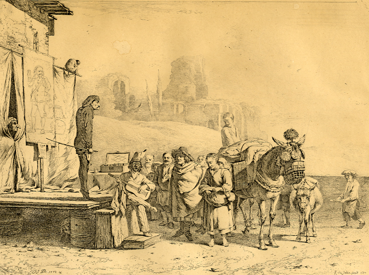 Grand cuivre de J. J. de Boissieu, gravé d’après le tableau de Karel Dujardin (Louvre, 1657), tiré du cabinet de Monsieur Blondel de Gagny, receveur général des finances.