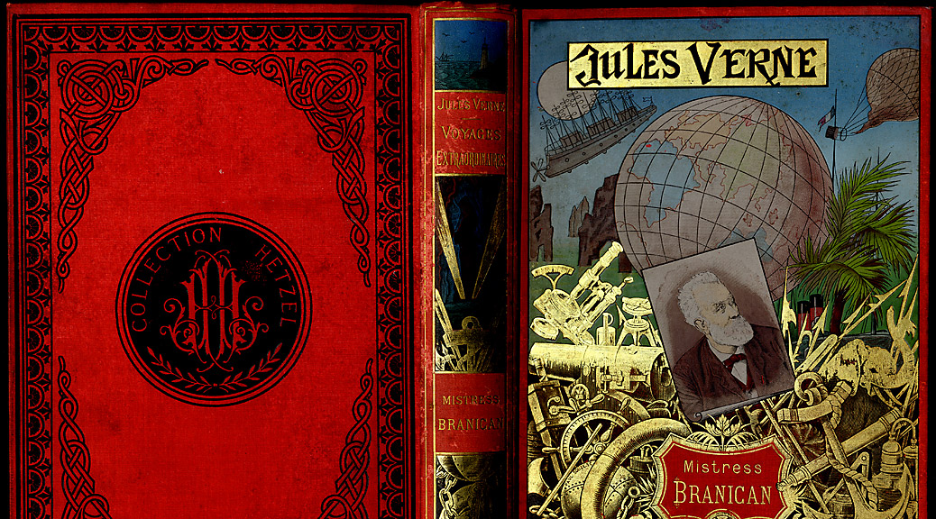 Pierre-Jules Hetzel (1814–1886), issu d’un milieu modeste, profite du grand essor du livre illustré de la seconde moitié du XIXe siècle. Il est aussi très doué pour choisir les superbes cartonnages sortis des ateliers de Charles Magnier (1821–1904). La reliure industrielle a désormais accès à une large gamme colorée grâce aux procédés de teinture chimique mis au point au milieu du XIXe siècle. Cette édition de Jules Verne a été couronnée par l’Académie française.