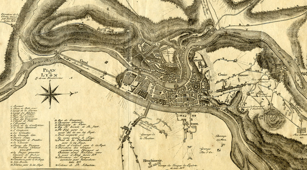 Le dessin à la plume sur pierre lithographique permet de rendre autant de détails (sinon plus) que la gravure en taille-douce, mais avec une plus grande facilité. Cette planche datant des premières années du développement de la lithographie en France est extraite de l’ouvrage de Christian Friedrich Mylius, Fussreise durch das Südliche Frankreich (Voyage à pied dans le sud de la France).