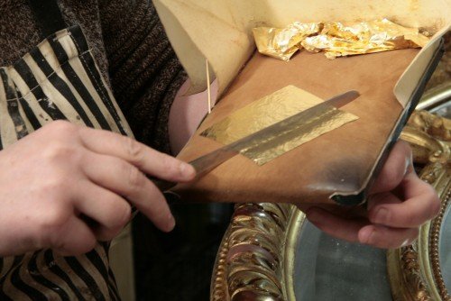 Dans le premier cas, la feuille d’or est fixée par des fers chauds, d’où le terme de dorure à chaud.