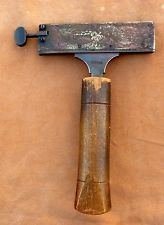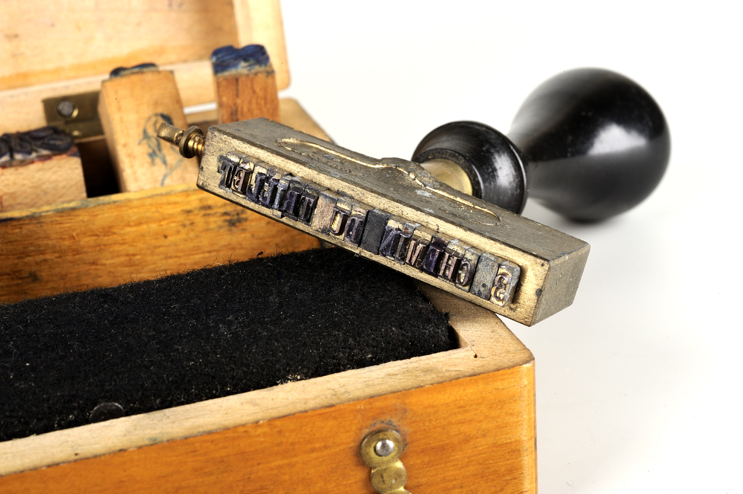 - Un composteur: boîtier en bronze serti dans un manche en bois, dans lequel sont assemblés des caractères pour marquer le dos d’un volume