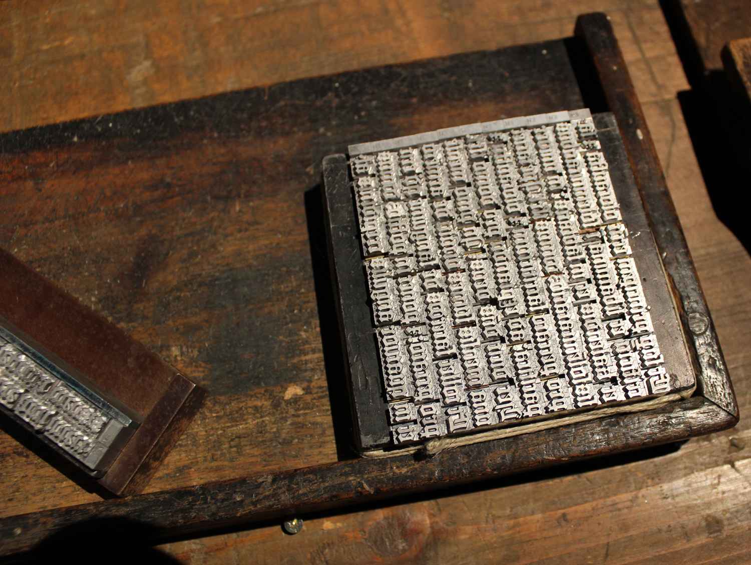 On range les lignes de texte au fur et à mesure de leur composition sur la galée : plateau en bois fermé sur deux ou trois côtés par des rebords à l’équerre.
