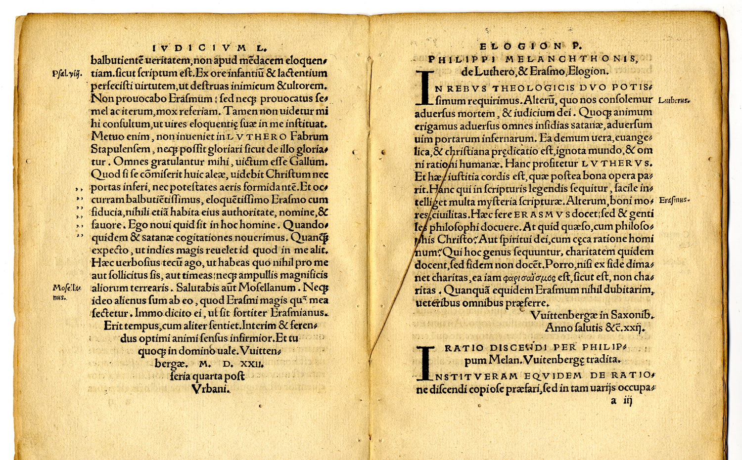 Cette plaquette imprimée anonymement à Strasbourg marque le début de la querelle entre Luther et Érasme, qui éclate avec violence en 1524 à la suite de la publication du Libero Arbitrio (Essai sur le libre arbitre) et qui consommera la rupture définitive entre la Réforme et l’Humanisme.