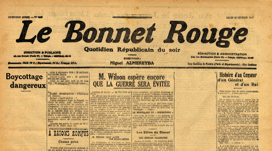 Pendant la Première Guerre mondiale, la censure bat son plein. En aucun cas l’ennemi ne doit connaître l’état des troupes, les plans de batailles, les stratégies de l’État major. Il est exclut que le citoyen apprenne la vérité sur la vie des tranchées, les manœuvres désastreuses, le moral en berne, les désertions, les fraternisations avec l’ennemi, etc. La censure intervient après la composition du texte, avant son impression. Le censeur fait tout simplement retirer les textes interdits, y laissant de vastes colonnes blanches et mystérieuses, parfois remplies de petits carreaux noirs.