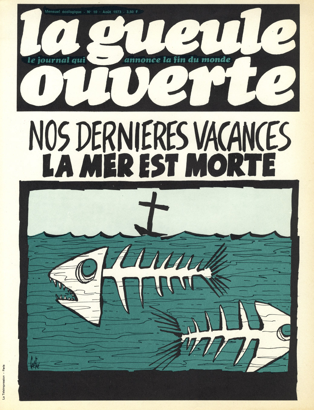 Dans les années 1970, l’écologie vit sa jeunesse rebelle. La gueule ouverte, « le journal qui annonce la fin du monde », s’en prend violemment au nucléaire et aux multinationales. Toutefois, sa mise en page reste classique : alors que certains militants bricolent leur journal, on a ici un objet réalisé dans un esprit plutôt professionnel.