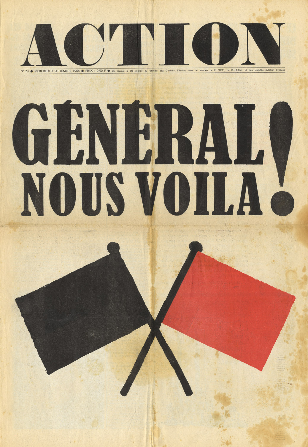 Lancé dans l’effervescence du mouvement de Mai 68, Action est publié par Jean Schalit, ex-dirigeant de l’Union des étudiants communistes, qui s’associe avec des camarades comme lui exclus du parti, parmi lesquels Bernard Kouchner, Marc Kravetz, André Glucksmann,… Journal très graphique, il est illustré par Wolinski, Willem, Reiser ou Siné. Les couvertures ne sont pas signées, mais elles sont généralement réalisées par le graphiste franco-polonais Roman Cieslewicz.
