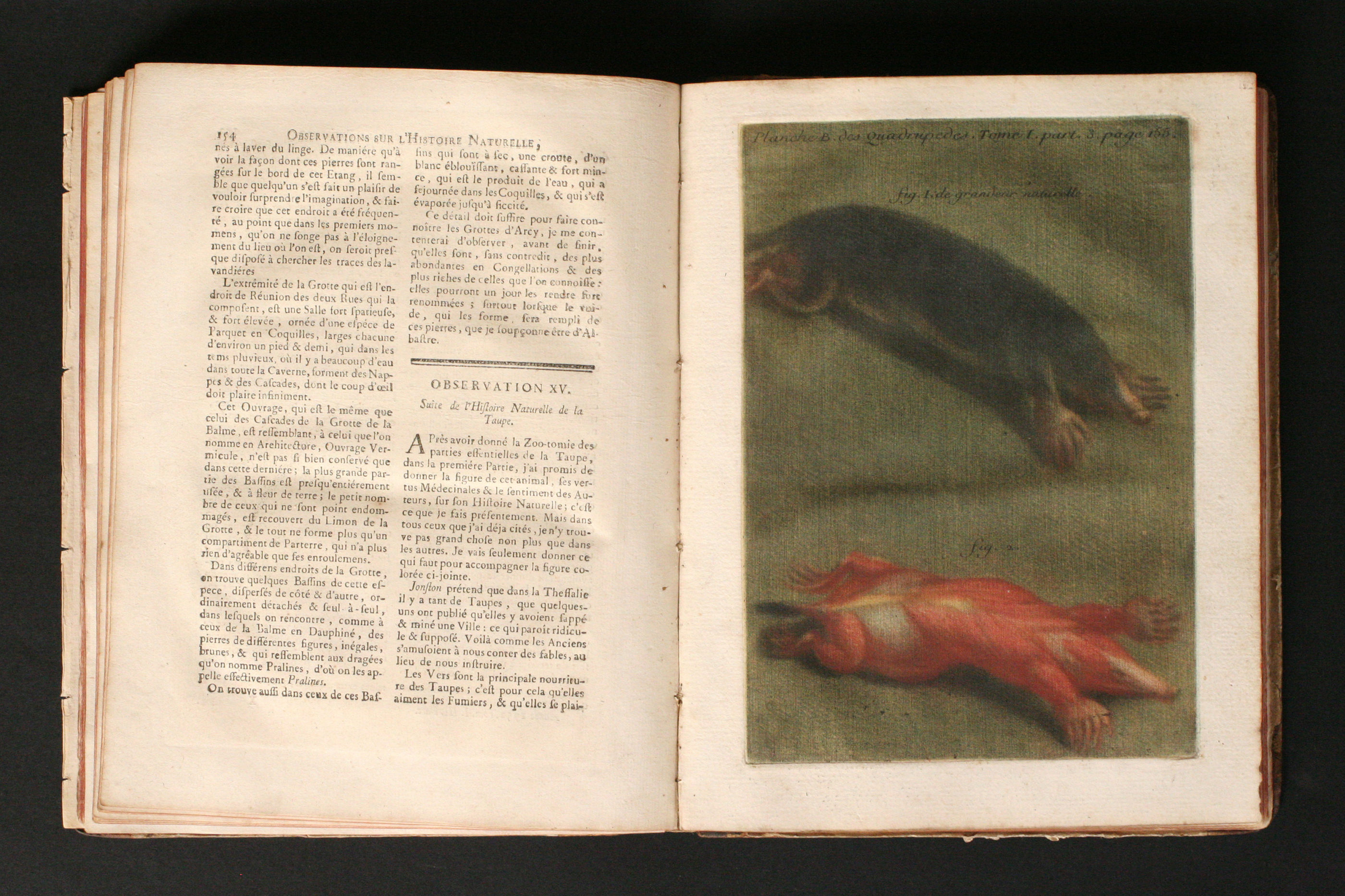 La gravure en couleurs à la manière noire a été inventée en 1719 par un peintre de Francfort, Jacques-Christophe Le Blon, utilisant la théorie des couleurs de Newton. Repris en France par Gautier-D’Agoty, ce procedé permet d’obtenir une large gamme de couleurs par la combinaison de trois tons primaires (jaune, bleu et rouge). Les illustrations scientifiques gagnent en lisibilité grâce à l’introduction de la couleur qui, jusqu’alors, ne pouvait être ajoutées que manuellement. Ce n’est qu’une centaine d’années plus tard que l’impression en couleurs se généralise, grâce à la chromolithographie.