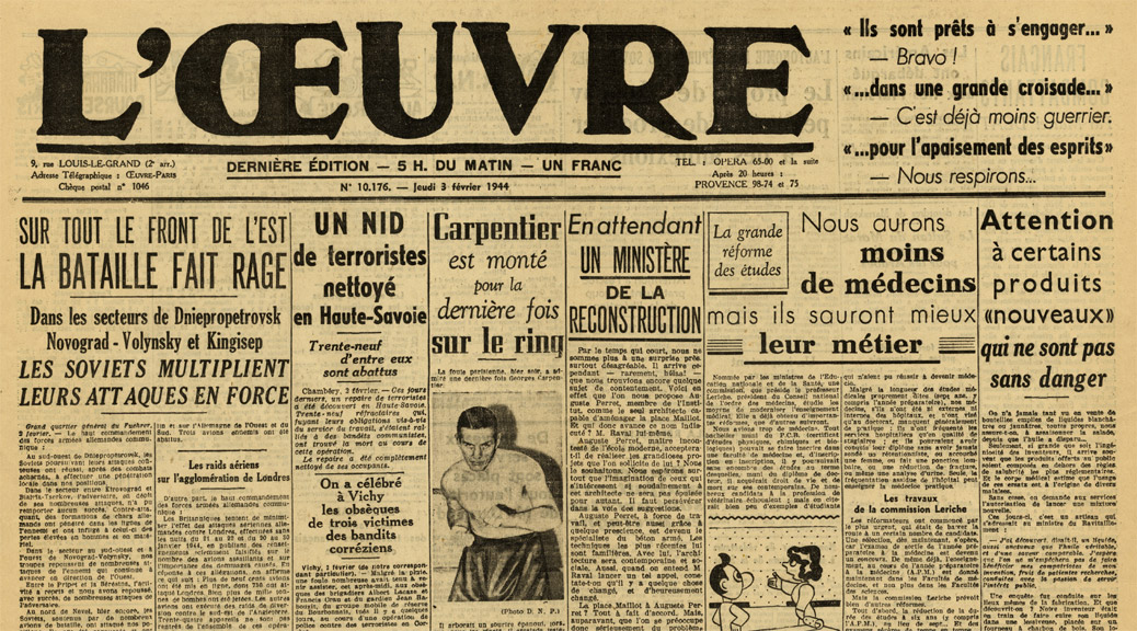 À ses débuts en 1904, L’Œuvre est un journal pacifiste et républicain. Début 1940, il quitte Paris pour St-Étienne puis Clermont-Ferrand. À partir du 5 juillet, il est dirigé par Marcel Déat, qui l’oriente vers les idées de son parti politique pro-Nazi, le Rassemblement national populaire. Ils reprochent au gouvernement de Vichy de ne pas être assez engagée dans la « collaboration européenne ».