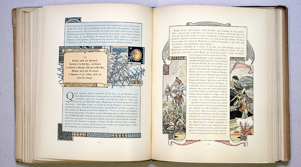 Exemple emblématique du nouveau « livre de luxe » qui combine prouesse technique et remise en cause des traditions de la bibliophilie. Dans cette édition qui s’inspire du poème épique du XIIe siècle, la chromotypographie est employée pour mettre en valeur les illustrations d’Eugène Grasset. Les images pseudo-moyenâgeuses contrastent avec le recours aux techniques d’impression les plus modernes, la chromotypographie notamment. Boudé à l’époque par de nombreux bibliophiles, cet ouvrage fut encensé par le collectionneur Octave Uzanne, qui le considérait comme « le plus beau livre du siècle ».