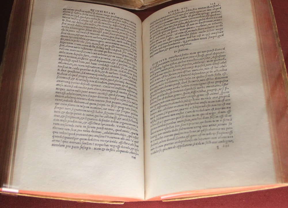 Cet ouvrage est composé avec les caractères italiques qu’Alde Manuce a fait graver par Francesco Griffo en 1501. Inspiré de l’écriture humanistique, ce caractère étroit et élégant a été créé spécialement pour une collection de livres de poche, maniables et peu coûteux, qui ont connu un succès immédiat.