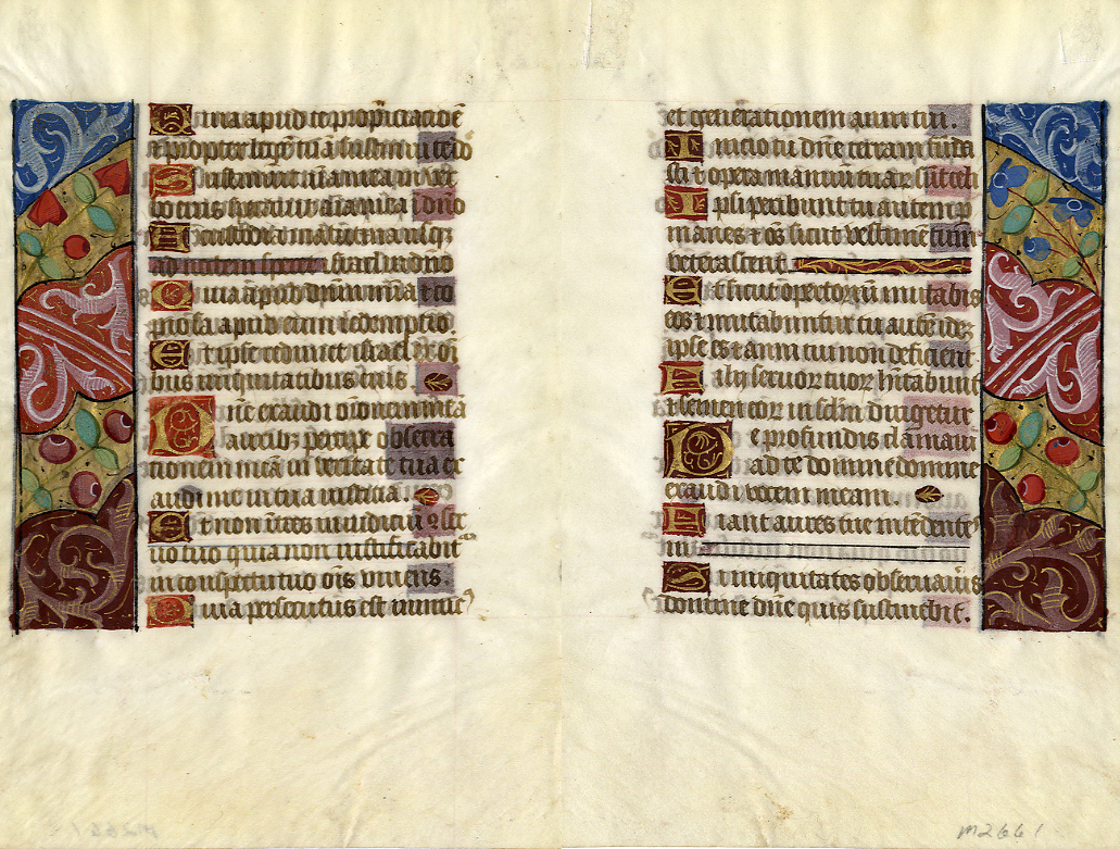 Livre de prières à l’usage des fidèles, le livre d’heures est utilisé au Moyen Âge par des hommes et femmes de toutes classes sociales. Son succès est lié aux nouvelles pratiques de la spiritualité, comme la devotio moderna qui se développe à cette époque. Ici, il s’agit d’une version de luxe rehaussée d’or.
