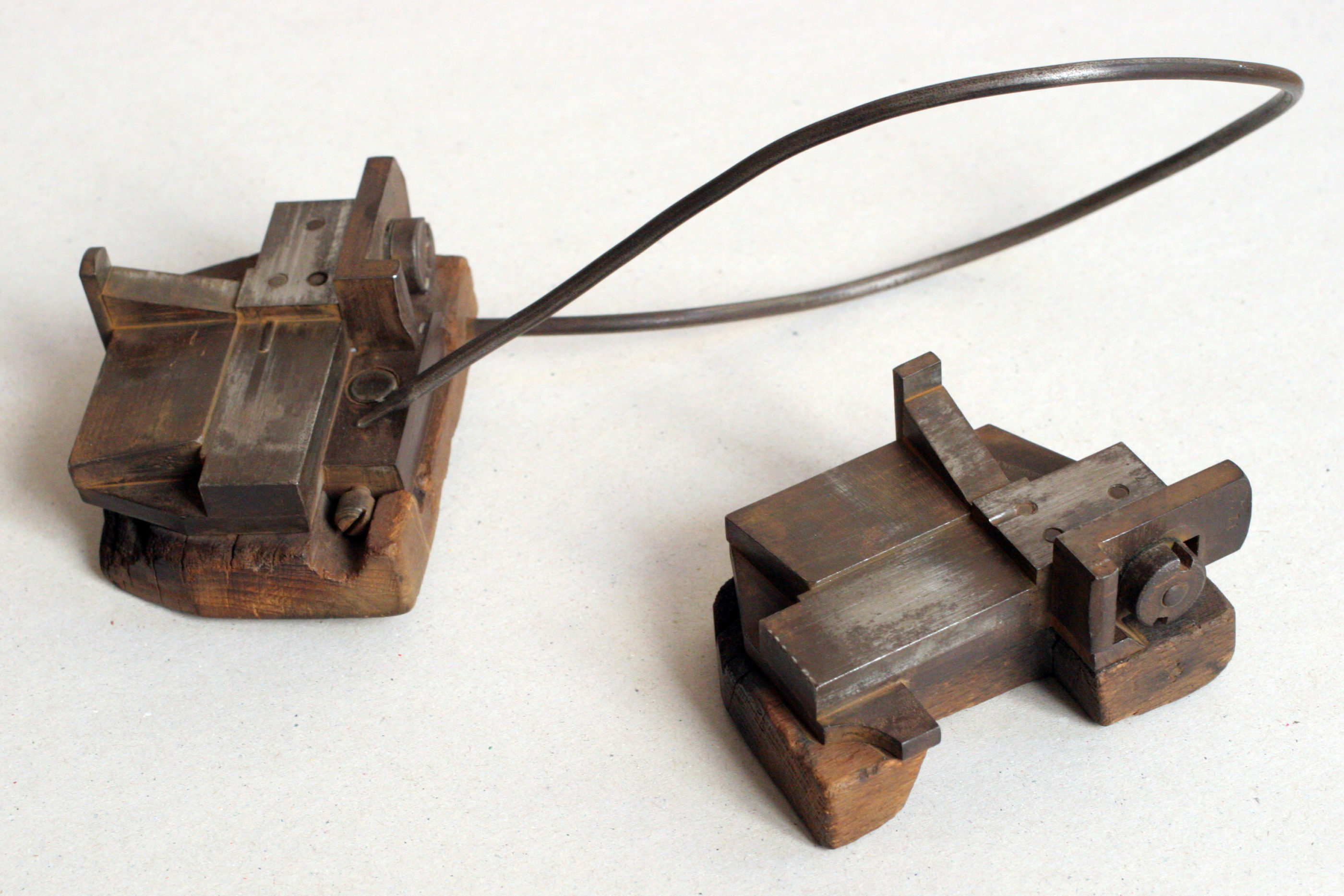 Ce petit appareil, qui date du XIXe siècle, sert à fondre les caractères en plomb. Son mode de fonctionnement est sensiblement le même que celui des moules utilisés au XVe siècle.