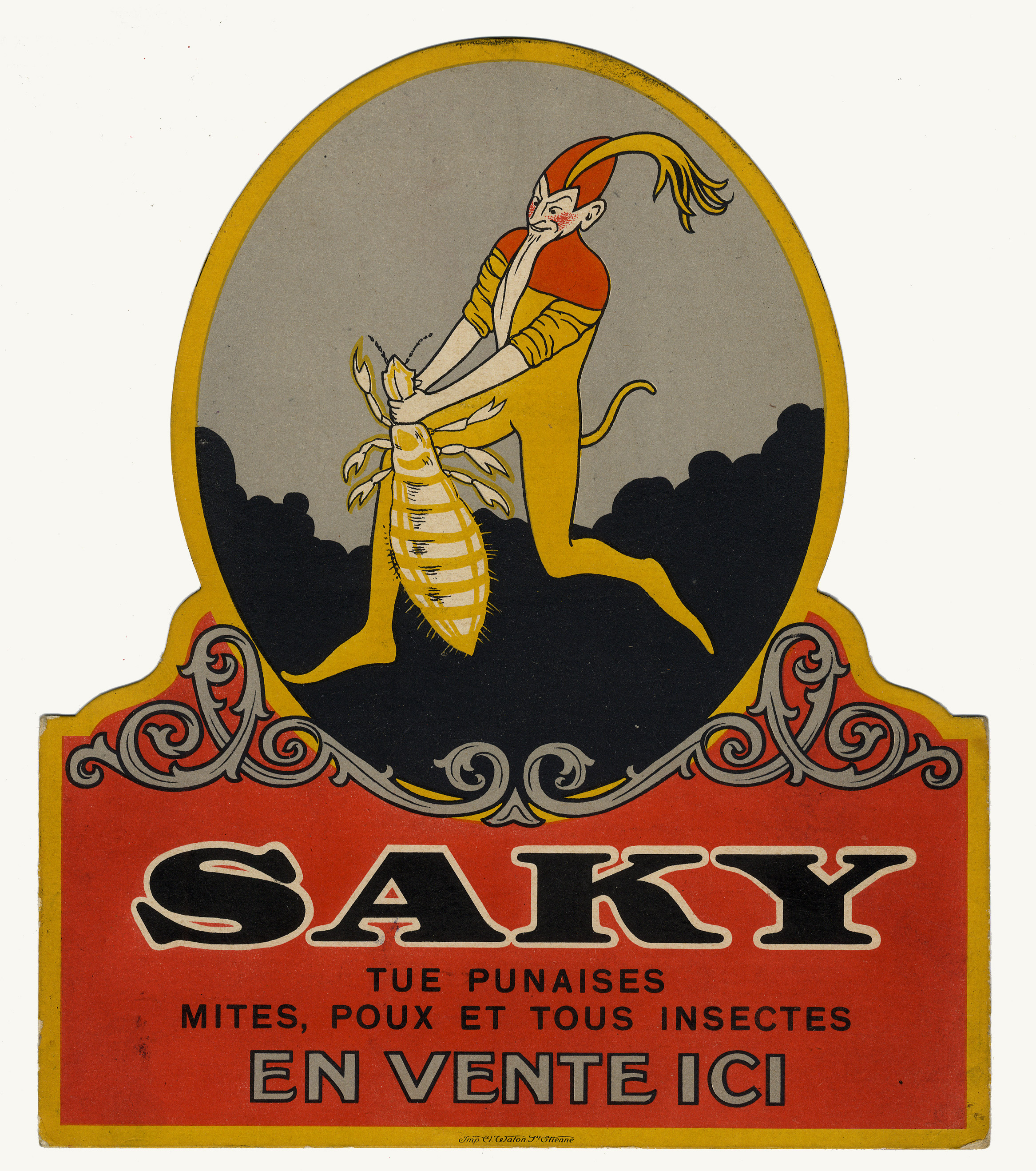 Les PLV (publicités lieux de vente) se trouvent fréquemment, chez les commerçants, près de la caisse, où ils incitent le client à acheter un petit objet du quotidien qui ne faisait pas partie de la liste de courses. Ici, les insecticides et raticides de la société bordelaise Saky sont mis en avant par de vives couleurs.