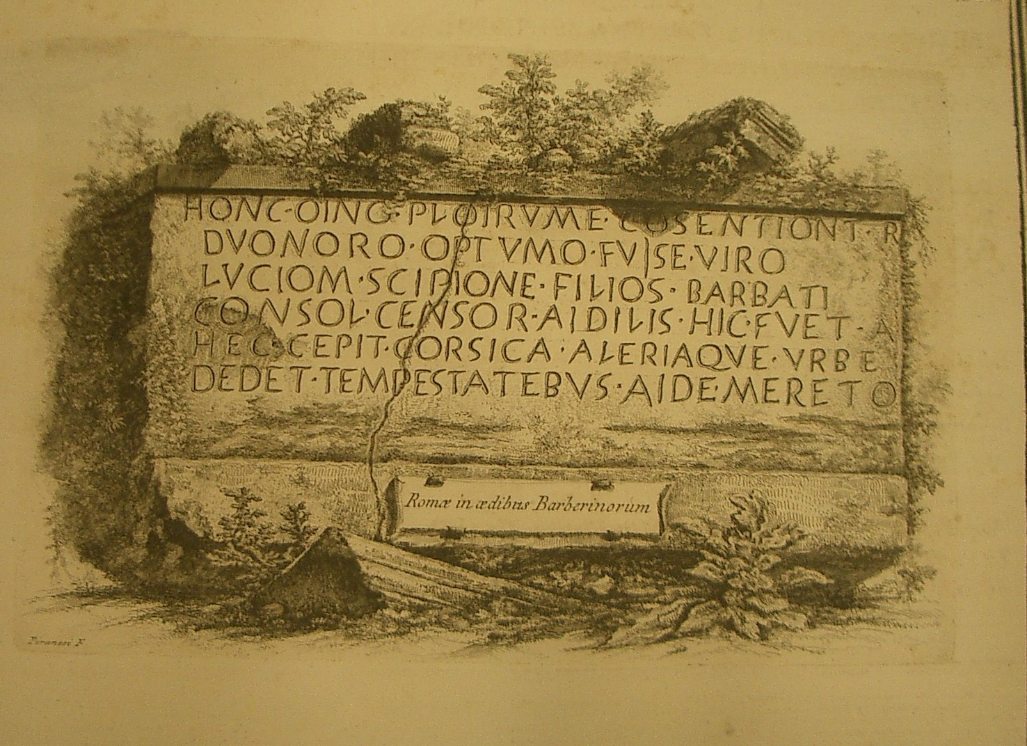 Cette estampe est extraite du répertoire des monuments antiques de Rome édité par le dessinateur et graveur Piranèse. Il y montre sa virtuosité en dessin architectural et pictural, sa grande culture littéraire et documentaire et sa parfaite maîtrise de la technique de l’eau-forte. À travers la gravure, il réussit à rendre avec brio les différents matériaux des monuments et les effets de leur vieillissement et dégradation. Passionné de l’architecture romaine, Piranèse a consacré sa vie à son étude et à sa promotion à travers un immense œuvre gravé. Ses estampes connurent un grand succès auprès des voyageurs et collectionneurs, à une époque où l’Antiquité fascine, inspire, fait rêver…