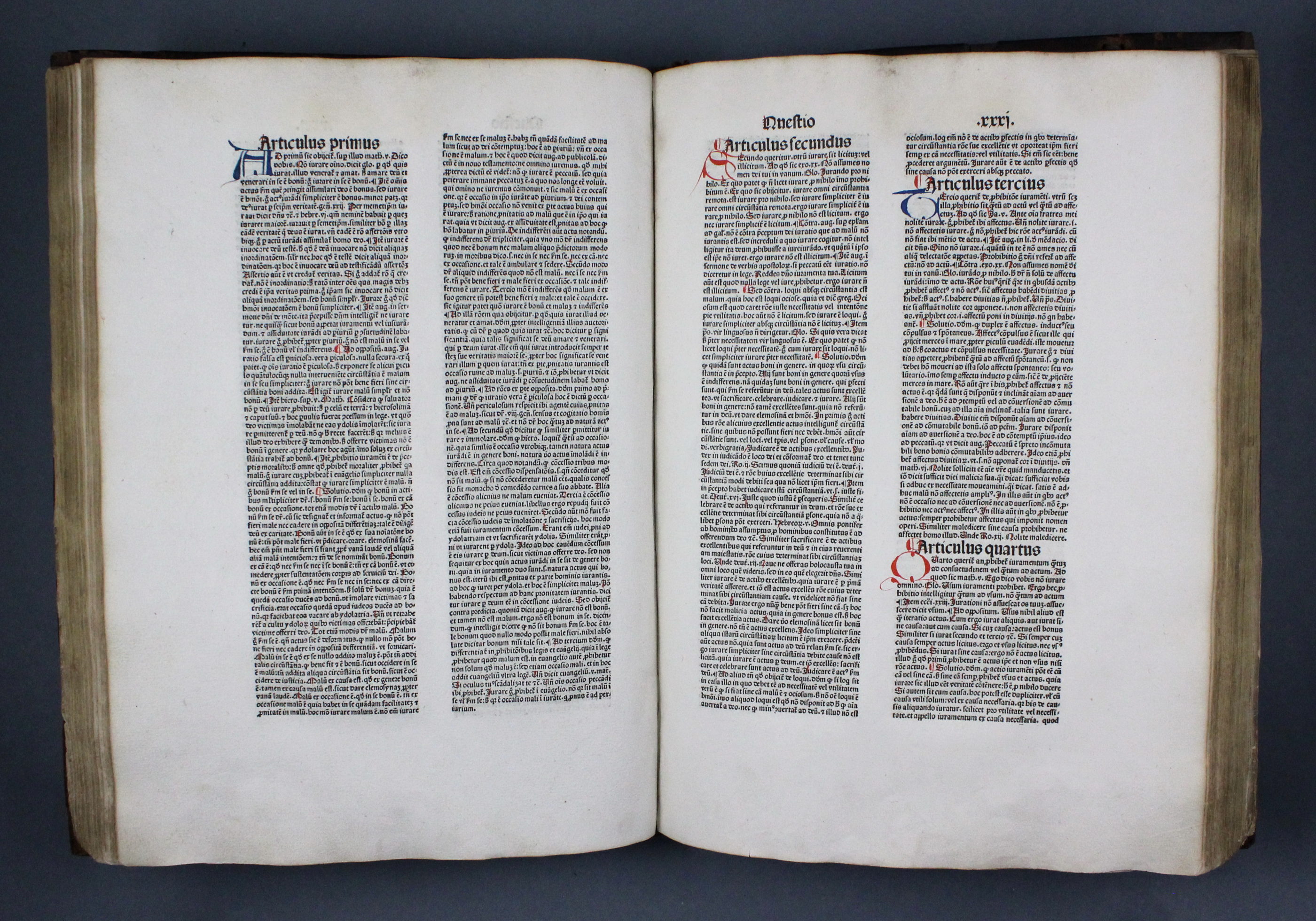 Le terme incunable (du latin incunabulum, berceau) désigne les tout premiers livres imprimés entre 1450 et Pâques 1501. Celui-ci, datant de 1482, est sorti des ateliers d’Anton Koberger qui, avec 24 presses et une centaine d’ouvriers, était le principal imprimeur d’Allemagne à son époque.
