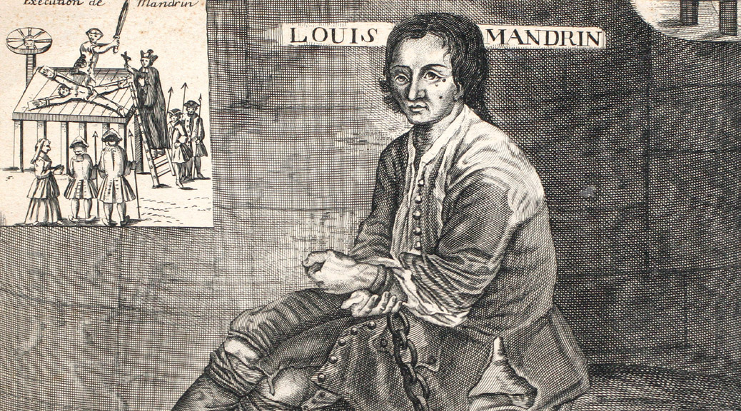 Louis Mandrin, célèbre contrebandier dauphinois du XVIIIe siècle, est une figure très populaire au XVIIIe siècle. Révolté contre la Ferme générale, chargée de collecter les taxes sur les marchandises, il défie l’administration en s’entourant d’une véritable armée de contrebandiers, principalement savoyards. Ce canard le montre dans sa cellule après sa capture. On voit également son exécution, sur la roue. Des canards de ce type ont contribué à la légende du « bandit justicier » qui entoure encore aujourd’hui Louis Mandrin.