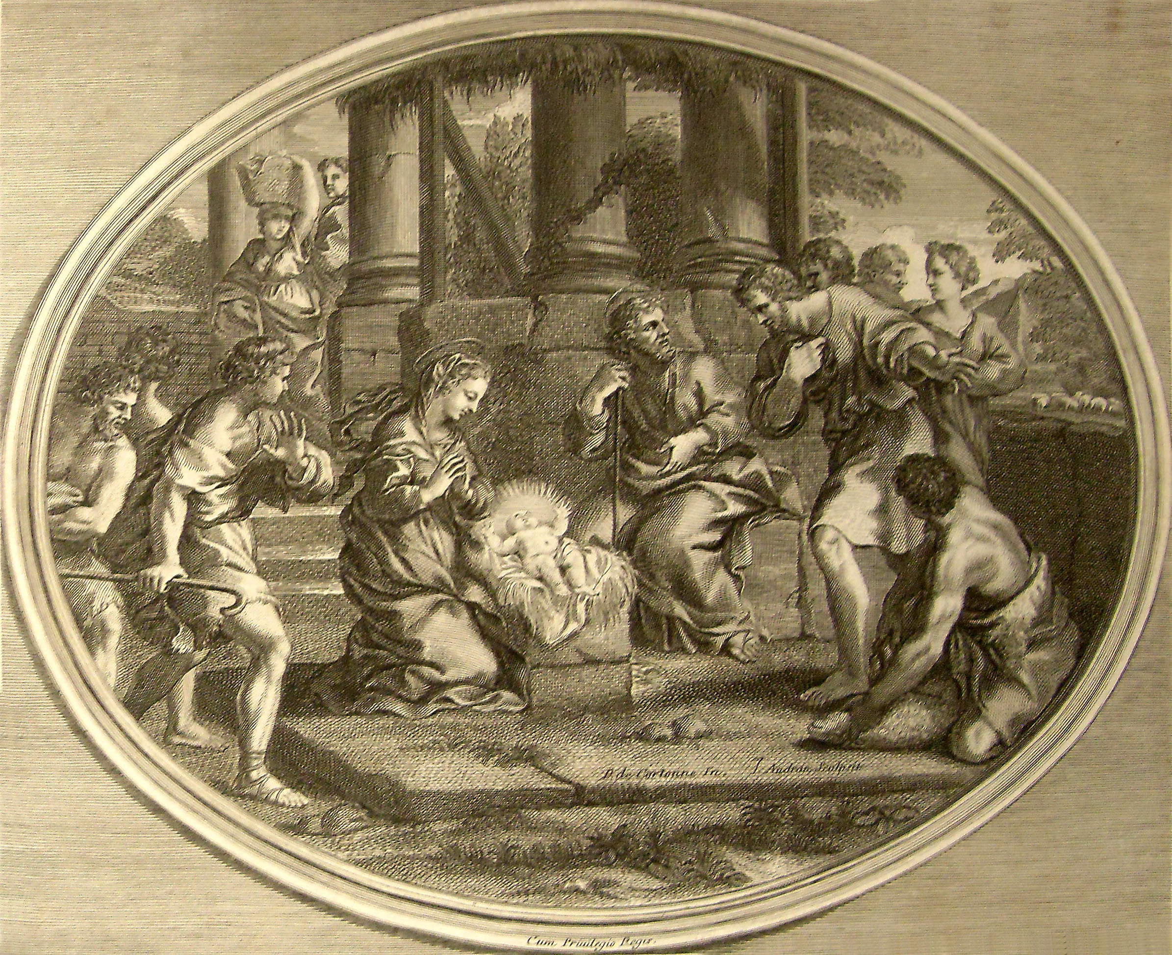 Issu d’une grande famille lyonnaise de graveurs, Jean Audran était aquafortiste et buriniste. Il fait son apprentissage à Paris chez son oncle Gérard Audran, considéré comme l’initiateur de la gravure « à l’esprit nouveau », au XVIIIe siècle. Jean Audran est nommé graveur ordinaire du Roi en 1707, et reçu à l’Académie un an plus tard. Ici, il reproduit au burin une toile du peintre baroque Pierre de Cortone.